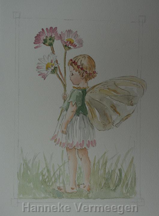 Verkocht-bloemenmeisje, aquarel